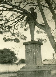 Curiosamente, a atual estátua não corresponde à original ali colocada. Depois de sofrer danos causados por um galho de árvore e caiu sobre ela, na reforma foi-lhe tirado o fuzil que segurava em suas mãos.