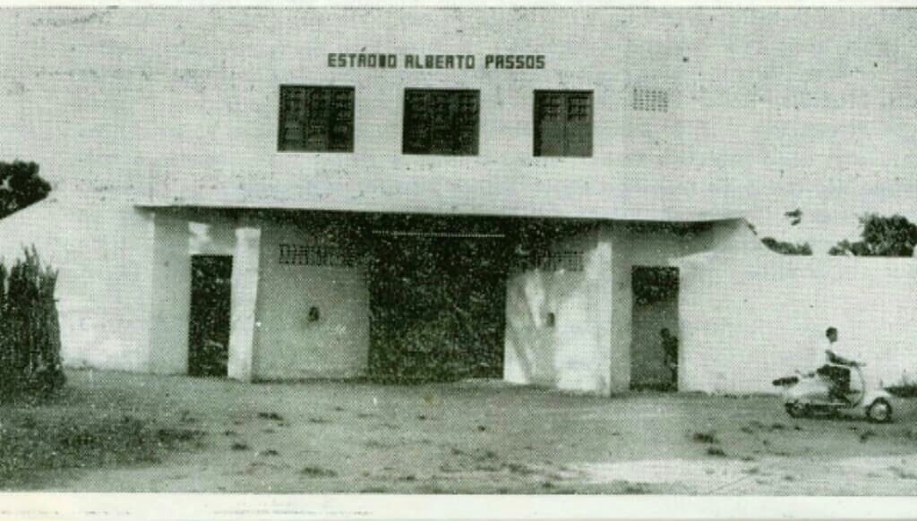 Fachada do Estádio Alberto Passos, construído pela administração da Santa Casa de Misericórdia e mantido com recursos financeiros obtidos na venda dos ingressos para os jogos ali permitidos.