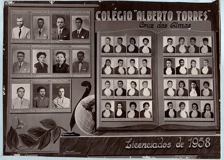 Eis aqui, alguns dos professores e professoras do Ginásio Alberto Tôrres, nos anos 50. Em pé da esquerda para direita: Prof. Floriano Mendonça (Latim e Português), Prof. Gilberto da Mata (Geografia), Prof. Clodoaldo Costa (diretor e prof de Boas .Maneiras) e Prof. Anibal Ramos (Matematica e Desenho), o último da fileira.