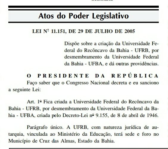 Lei que criou a Universidade Federal do Recôncavo da Bahia, um presente não só para Cruz das Almas, mas para a Bahia e para o Brasil!!!