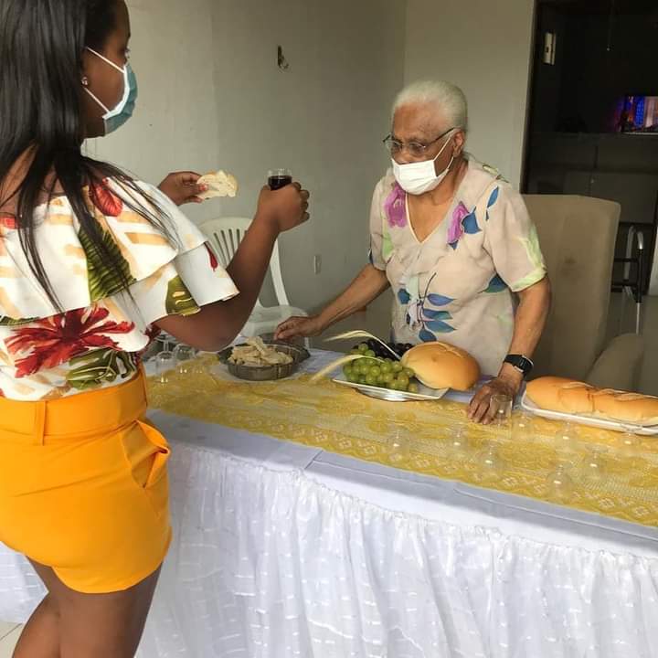 Conta-nos a sua filha, Telma Carvalho, também Mestra do Samba do Machucador: “É uma tradição da Família Carvalho, que minha Mãe sempre seguiu, em guardar a Quaresma. Seguindo cada etapa… e no mês que antecede a semana Santa nos dias de quartas-feiras e sextas-feiras, ela sempre seguiu e nos orientou a comer peixe nos respectivos dias e na sexta-feira Santa acontece o tradicional almoço. Mainha sempre reuniu a família para a entrega do pão e vinho e depois o tradicional almoço, seguido de rezas que ela costuma fazer. Ela faz questão que todos os filhos, netos , bisnetos e quem aparecer participem desse momento religioso. Momentos gratificantes que fazem parte de nós. Esse ano foi um pouco diferente por conta da pandemia, realizamos um drive-thru, idéia de uma das netas, Luane Hellen, para evitar aglomeração”.