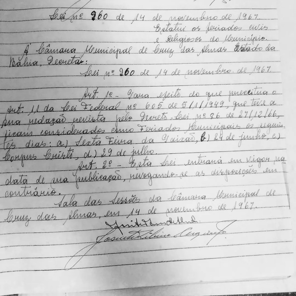 - O primeiro registro de uma Sessão Solene comemorativa da Emancipação Política de Cruz das Almas se dá apenas em 1955, curiosamente realizada no mês de abril.