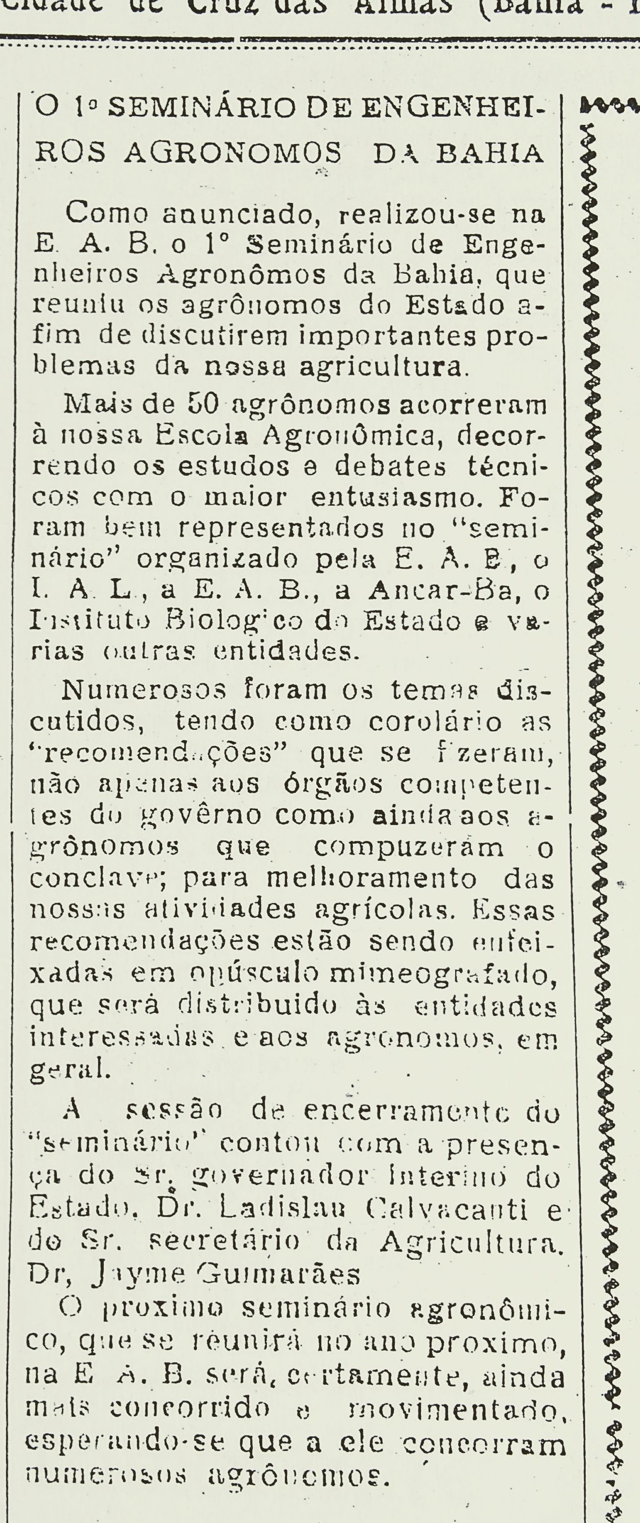 no ano de 1957, Cruz das Almas sediou o 1° Seminário de Engenheiros Agrônomos da Bahia?