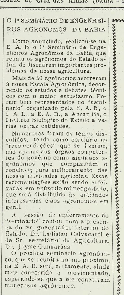 Aliás, é bem antiga a relação entre Cruz das Almas e muitos engenheiros agrônomos que por aqui estiveram ou passaram, como estudantes ou como profissionais…