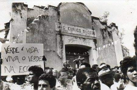 Foto histórica do público que esteve na já desativada Estação Eng. Eurico Macedo, antiga Estação de Pombal, para acompanhar a partida do trem VER DE TREM que levou componentes do Grupo Ecológico COPIOBA para a Eco-92 no Rio. Um grande evento.