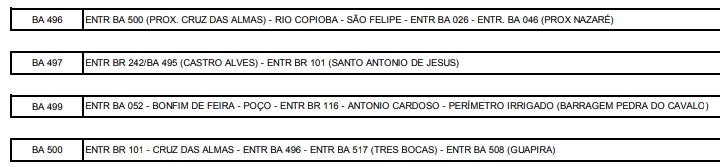 (Fonte: SRE 2020. Secretaria de Infraestrutura do Estado da Bahia. 2020.)