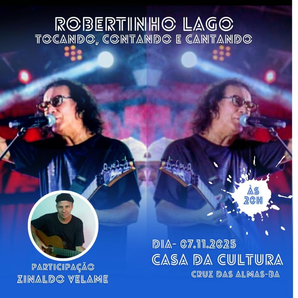 O palco simples, mas bem arrumado, aguardava o som de um cruzalmense que já há algum tempo faz da música esse elo entre o nosso passado recente e a nossa emoção presente: Robertinho Lago, dessa feita com o show Tocando, Contando e Cantando.